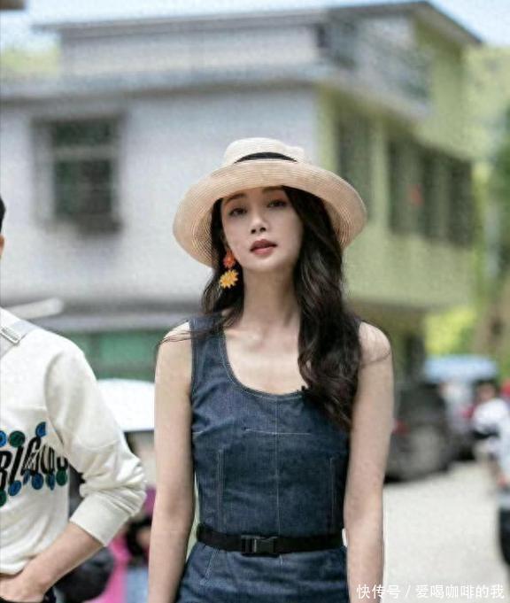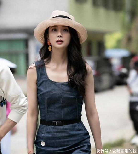 01牛仔裙+帽子+长卷发这条牛仔裙的肩带还挺宽的,要是你有溜肩的烦恼,这肩带能稍微帮你掩盖一下。这条裙子的领口是经典的U型,露肤刚好,不用担心走光,喜欢的姐妹们可以放心穿。大多数姑娘穿裙子的时候,都希望能把她们的小蛮腰显露出来。这基本上有两种办法:一种是裙子本身有收腰的设计(像殷桃穿的那条)。另一种就是加一条腰带。说到腰带的颜色,不管裙子是蓝色的还是白色的,黑色的腰带总是最合适的。